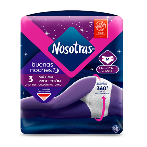 ¿Te gustaría tener una buena noche sin preocuparte por tu período? Protección 360° que te cubre perfectamente y se mueve contigo mientras duermes, para que descanses cómodamente durante las noches de flujo abundante. Tan fácil de usar como tu ropa interior.